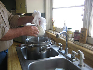 On Sunday, I had a wonderful experience of meeting a fellow named Tom and making goat cheese right in his kitchen.