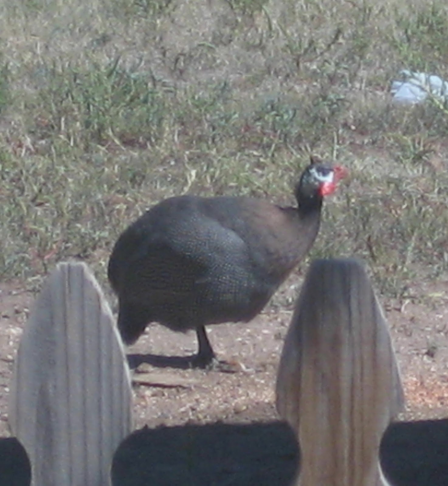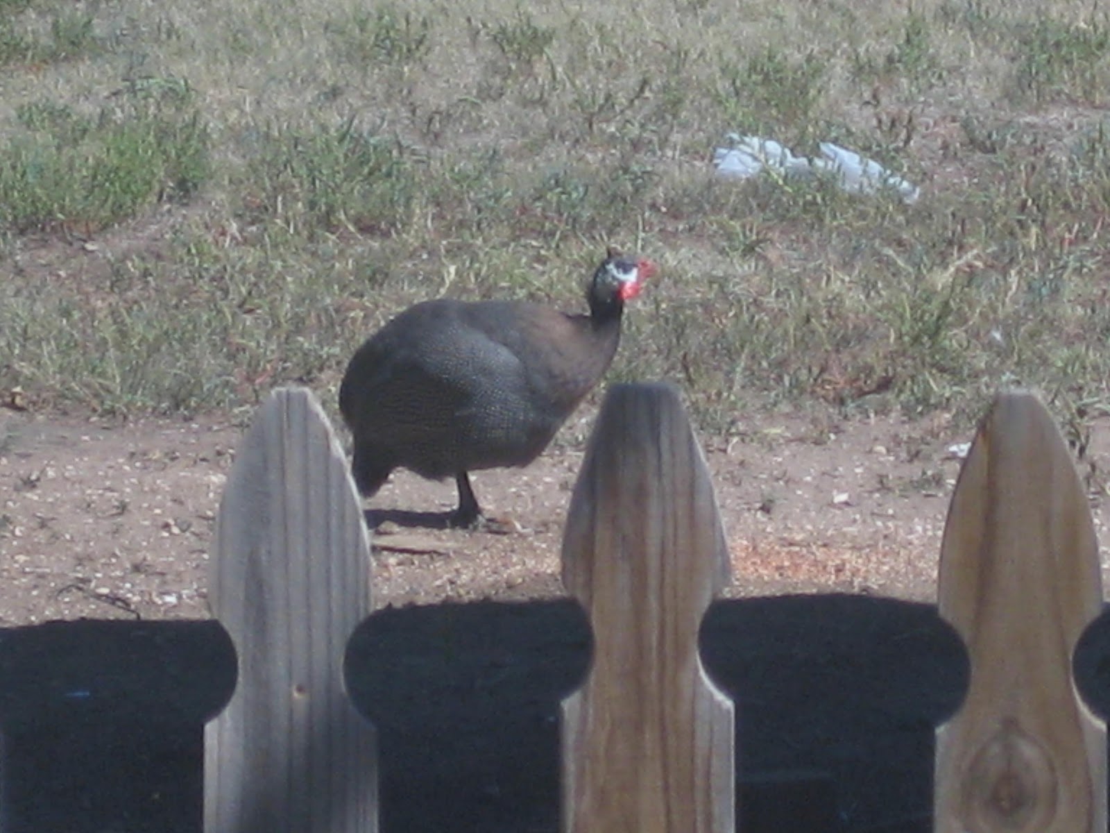 This is a guinea that lives in the backyard, or outside of the backyard, it wanders wherever it wants. It is wild as well and doesn't let anyone close to it.