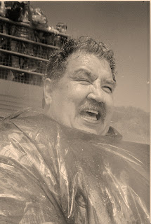 But! Do not despair. Because the number one search request that leads people to my rantings is Jesus laughing. People want to see an image of Jesus laughing. And it just so happens that I have a picture of Jesus laughing. My dad must've snapped it when they were wearing plastic ponchos and visiting Niagra Falls. And since it is the most requested, I thought I'd repost it.